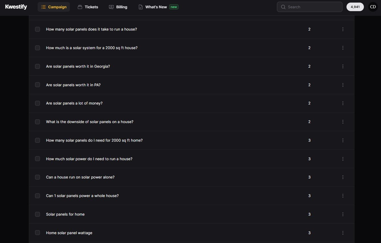 In-depth keyword research is the foundation of successful SEO. Kwestify’s People Also Search feature allows you to gather “People Also Search For” data from SERPs. By incorporating these additional keywords into your content, you can enhance your keyword research and increase the visibility of your website. Kwestify ensures that you have a comprehensive approach to keyword optimization, allowing you to stay ahead of the competition.